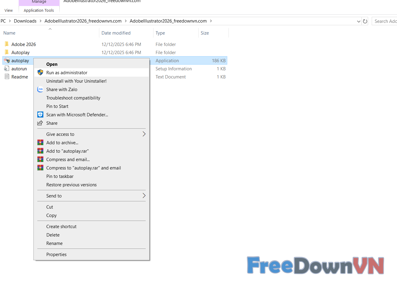 Bước 2: Chạy file autoplay.exe để tiến hành cài đặt Illustrator 2026