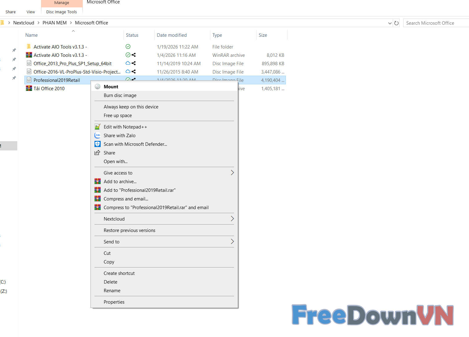 Bước 1: Tải file về nhấp chuột phải chọn Mount