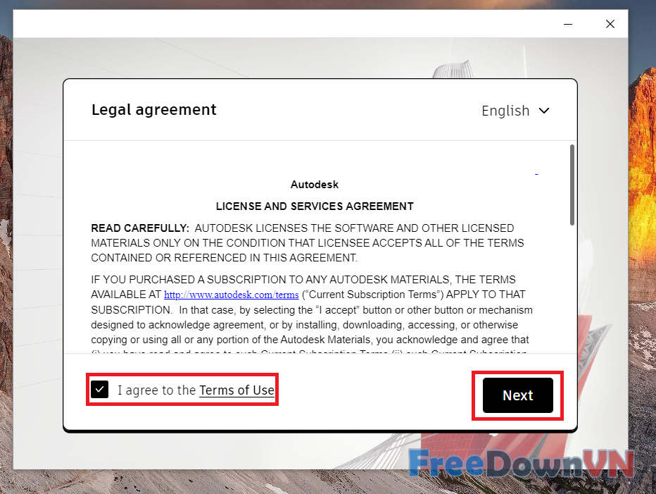 Bước 3: Tích chọn I Agree to the Terms Of User sau đó nhấn Next