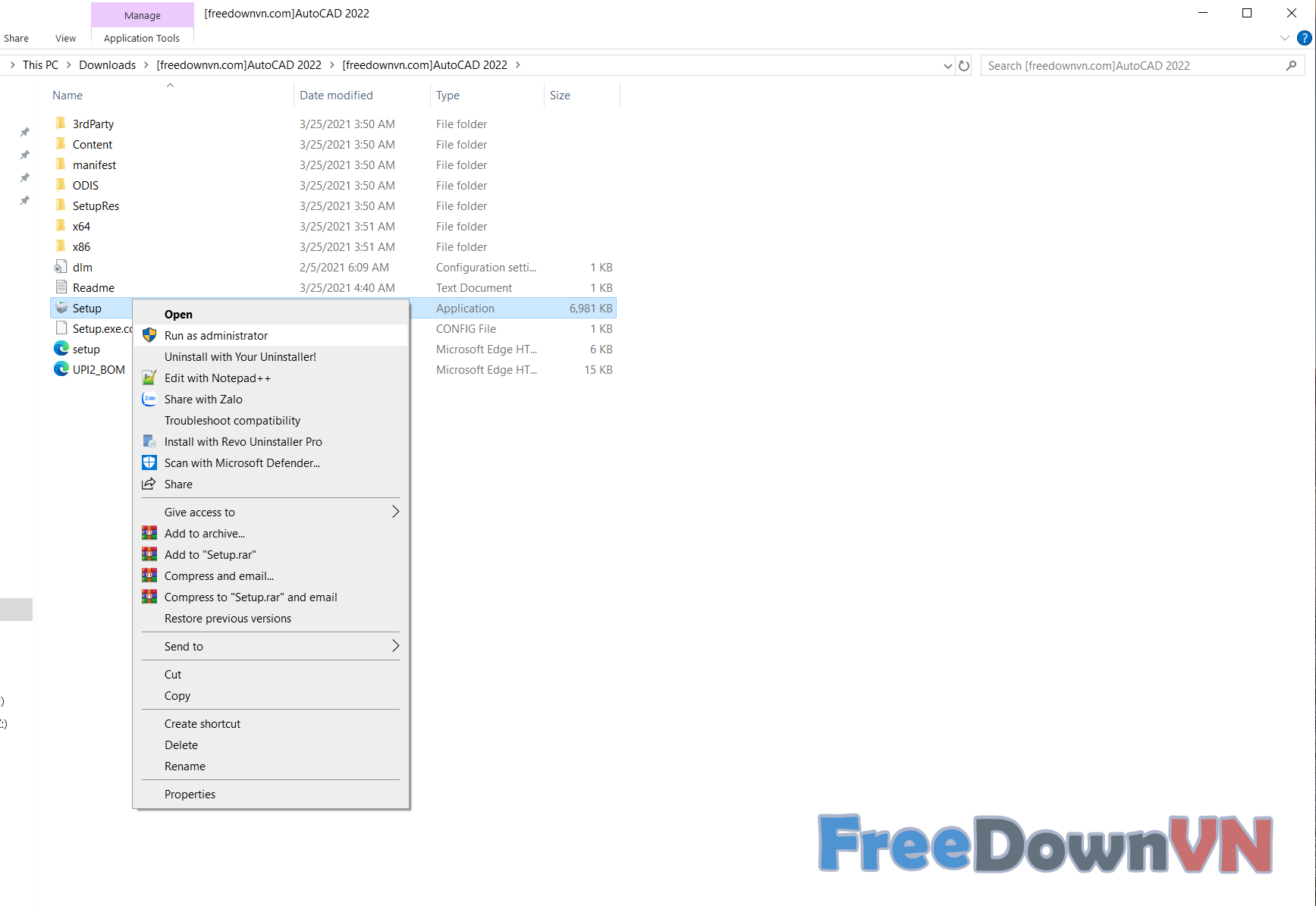 Bước 1: Giải nén phần mềm Autodesk AutoCad 2022 bằng WinRAR sau khi tải file về.
