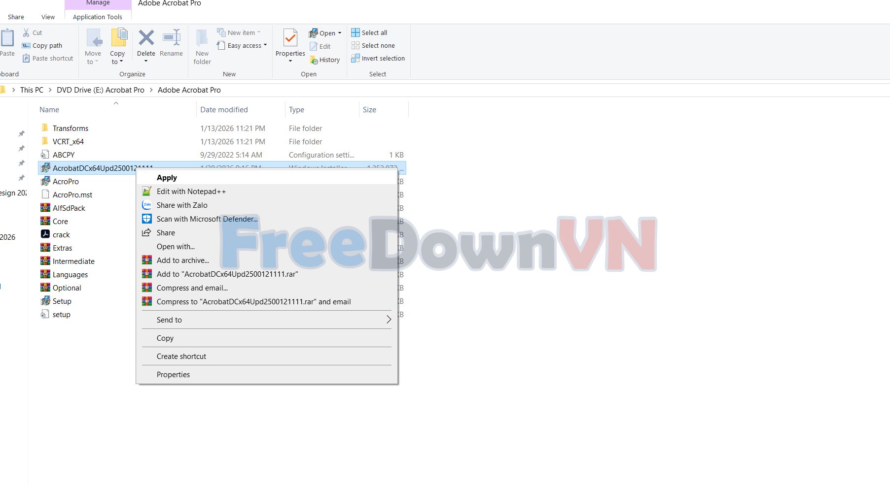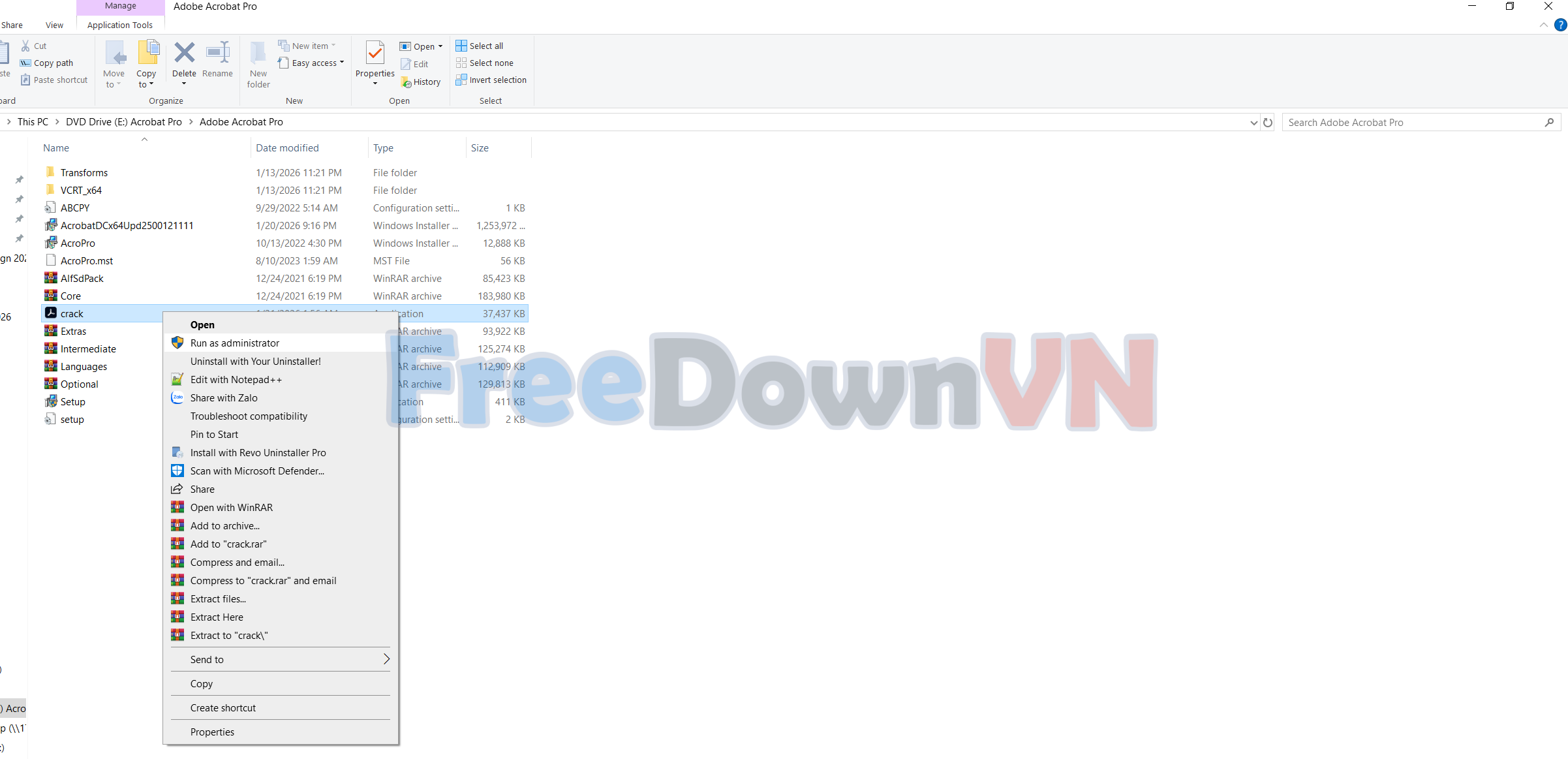 Bước 01: Tải về Acrobat Pro DC 2025 và giải nén phần mềm bằng WinRAR